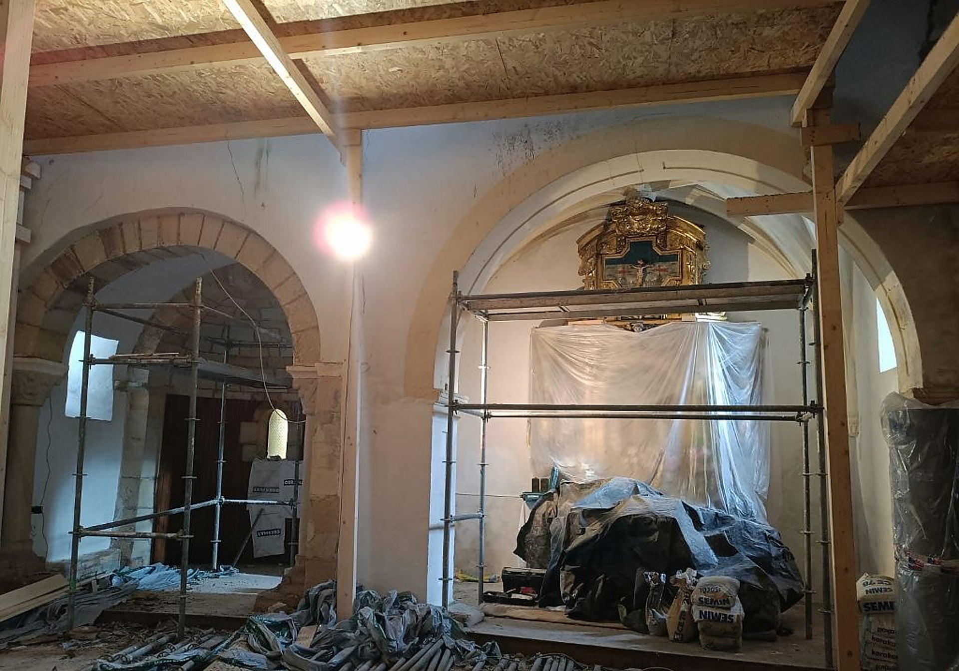 Los trabajos para reparar la cubierta corren a cargo del Obispado y suponen «una remodelación fundamental que nos permitirá pensar en los siguientes pasos a dar», porque la iglesia de Fontibre necesita de más actuaciones.