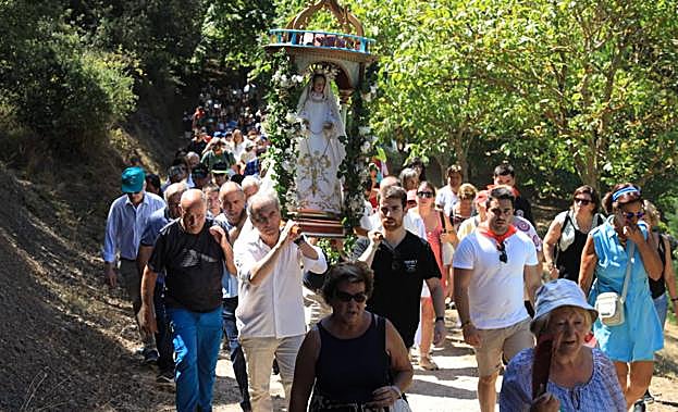 El alcalde, Javier Gómez y el presidente de la Hermandad de la Virgen de Valmayor, Jesús Gómez, participaron en la procesión, junto a gran número de devotos.