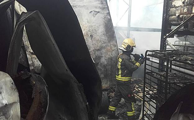 A su llegada, los bomberos se han encontrado con el interior de la nave en llamas y la cubierta ya colapsada. Las chapas caídas del tejado han dificultado las labores de extinción, complicando el avance de los efectivos al obstaculizar el paso, y tapar focos a extinguir, por lo que han tenido que mover piezas de gran tamaño para acabar con las llamas.