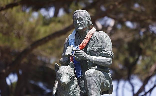 La ola de calor que Cantabria deja atrás se ha llevado el título de histórica. A su paso ha dejado máximas de hasta 43.5 ... grados en algunos puntos de la región. Una temperatura que desde luego no invita a salir de casa con bufanda. No, no es una prenda veraniega. Es más, ver a alguien por la calle con ella despertaría, sin duda, las caras de sorpresa de los viandantes. La misma que muchos ciudadanos han puesto esta mañana al pasear por la ciudad y toparse con alguna de las estatuas emblemáticas que estos días tienen el cuello tapado y lucen bufandas de colores. Están repartidas por la capital así que basta con fijarse. En concreto son 24 estatuas aunque ya hay algunas que han amanecido esta mañana sin ellas (se colocaron ayer). Así que quizá cueste más verlas. No obstante, al menos hay dos ejemplos que a primera hora seguían con ellas: los Raqueros que cuidan el Paseo de Pereda y, un poco antes, en los alrededores de los Jardines, las estatuas del monumento al incendio de Santander.