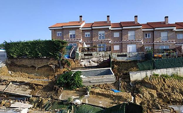 Primero fue un ruido. Fuerte. Pero en la cama, a las siete menos cuarto de la mañana, y con obras muy cerca de la puerta ... de casa, no le dio demasiada importancia. El caso es que lo siguiente fue sentir «como que caían piedrecillas y agua». Raro. Sobre todo porque, por lo que veía al otro lado de la ventana, no estaba lloviendo. «Entonces me levanté y vi que la piscina estaba desprendida». Que se había ido, junto con el muro que delimitaba su jardín, hacia abajo. Ocurrió el pasado martes y lo cuenta una vecina del barrio La Sierra, en la zona de El Alisal. Parte del muro trasero que delimita la urbanización se fue talud abajo y, con él, la piscina. Al solar en el que están ejecutando unas obras. Tras comprobar que las viviendas no presentaban problemas, el arquitecto municipal solicitó a la empresa que ejecuta esa obra que presentase «un plan de trabajo para acometer con carácter urgente la estabilización de talud». «Ese plan -confirman desde el Ayuntamiento de Santander- se presentó y se le dio el visto bueno para que pudieran ejecutarlo con urgencia». Y en ello están.