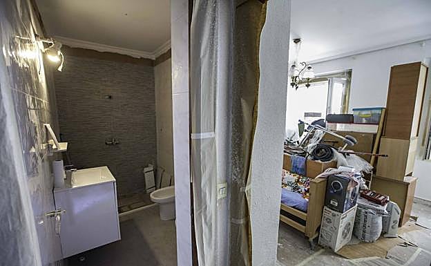 Se han realizado nuevos techos, colocado nuevas escayolas, se han acuchillado suelos y pintado paredes, se han arreglado azulejos que se cayeron y mejorado el saneamiento «y hasta se han limpiado los pisos para que puedan ser ocupados cuando los dueños quieran». También se han acuchillado y barnizado las veteranas escaleras de madera del edificio y en uno de los pisos se ha colocado un suelo flotante nuevo en todas las habitaciones.
