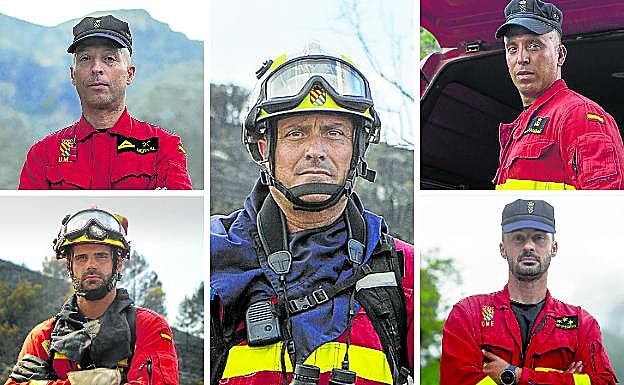 Este subgrupo táctico cumple la cuarta jornada en Vall d' Ebo y viene de un día de descanso después de tres en el incendio de Les Useres. Esta temporada ha combatido el fuego en Lérida (dos incendios distintos), Venta del Moro, Segovia, Ávila, Calles, Murcia y Castellón. «Este año es una burrada», resume Rafael Lagoa, brigada de 47 años, media vida como militar y nueve en la UME. «Es mi octavo incendio este verano, nunca había intervenido tanto. Lo peor es el caos que genera el fuego. La población civil colapsa y cuanto más se acerca a las zonas habitadas, más caótica se hace la situación y la actuación, más compleja. La gente se asusta y a veces trata de apagar el incendio por sus propios medios. Nosotros intervenimos para evitar que se hagan daño».
