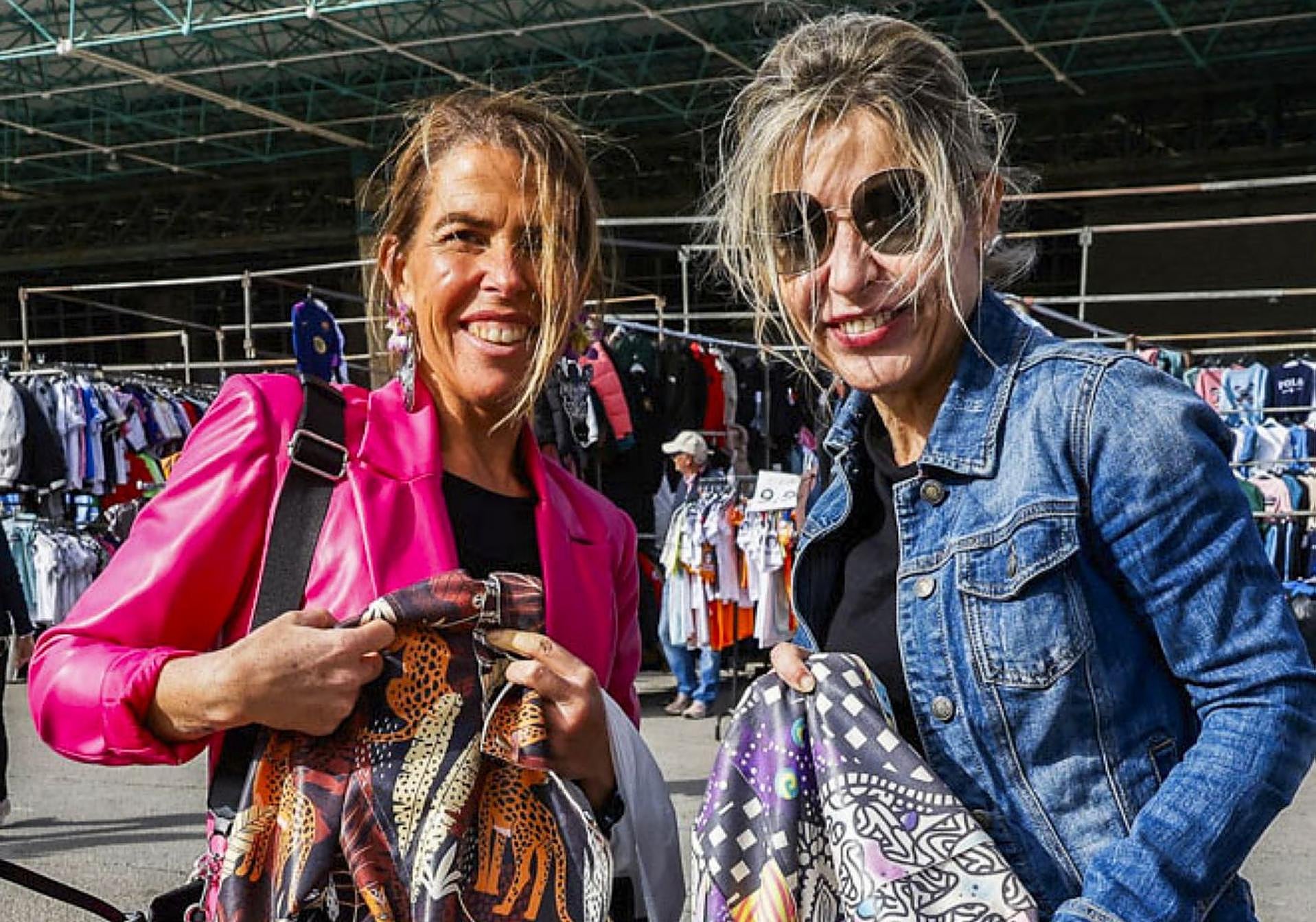Carmen Zumel, de Miengo -aunque natural de Valladolid- ya le había hablado a su amiga Merche García -de Santander- de los chollos y el ambiente que hay en el mercado de los jueves. Pues bien, al fin le hizo caso y vinieron ayer por primera vez. Juntas, estas dos profesoras del IES Zapatón posaron con sus nuevas chaquetas. «La gente es súper animada. Venir es casi terapéutico», decía Carmen; «tengo que venir más», zanjaba Merche.