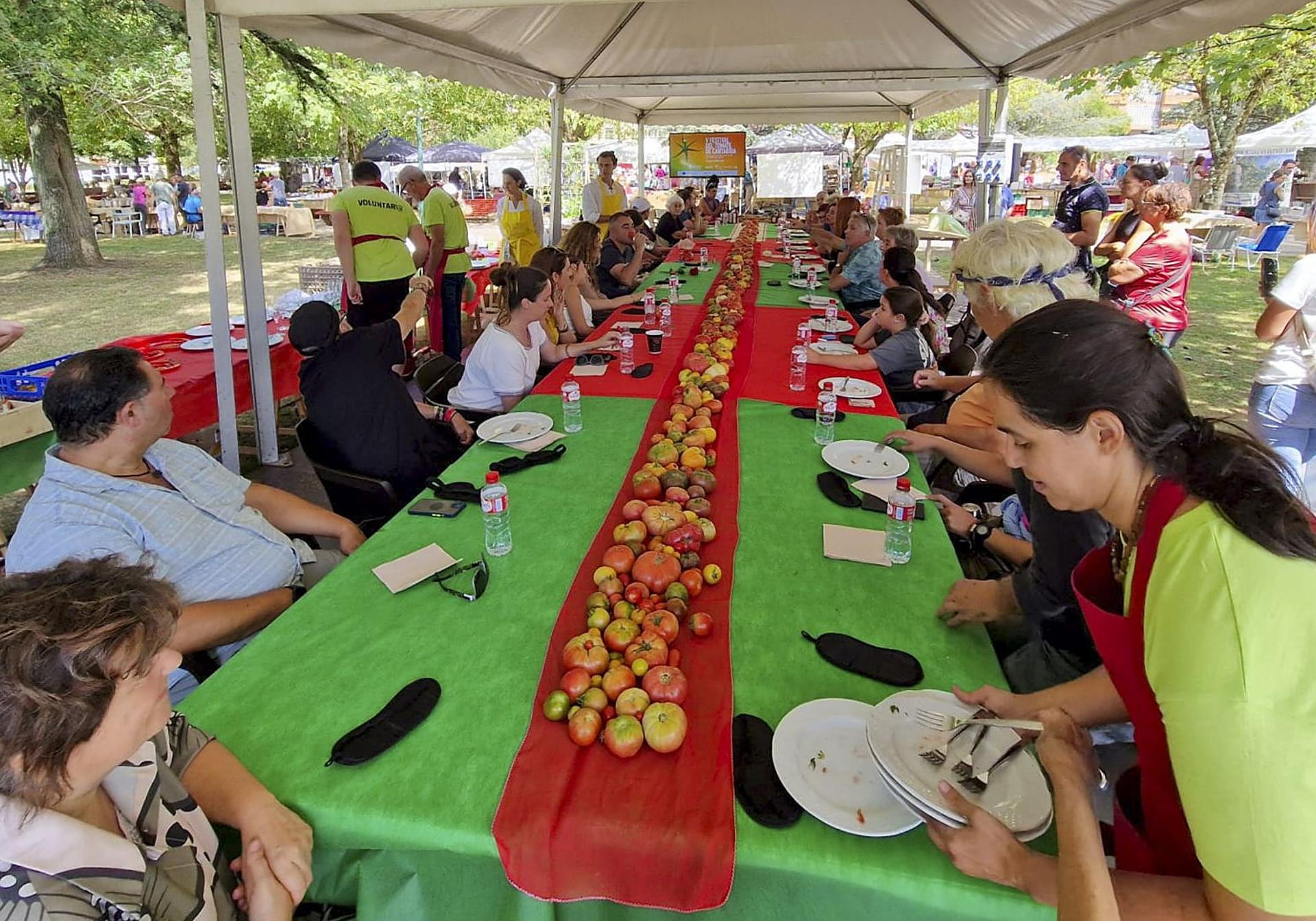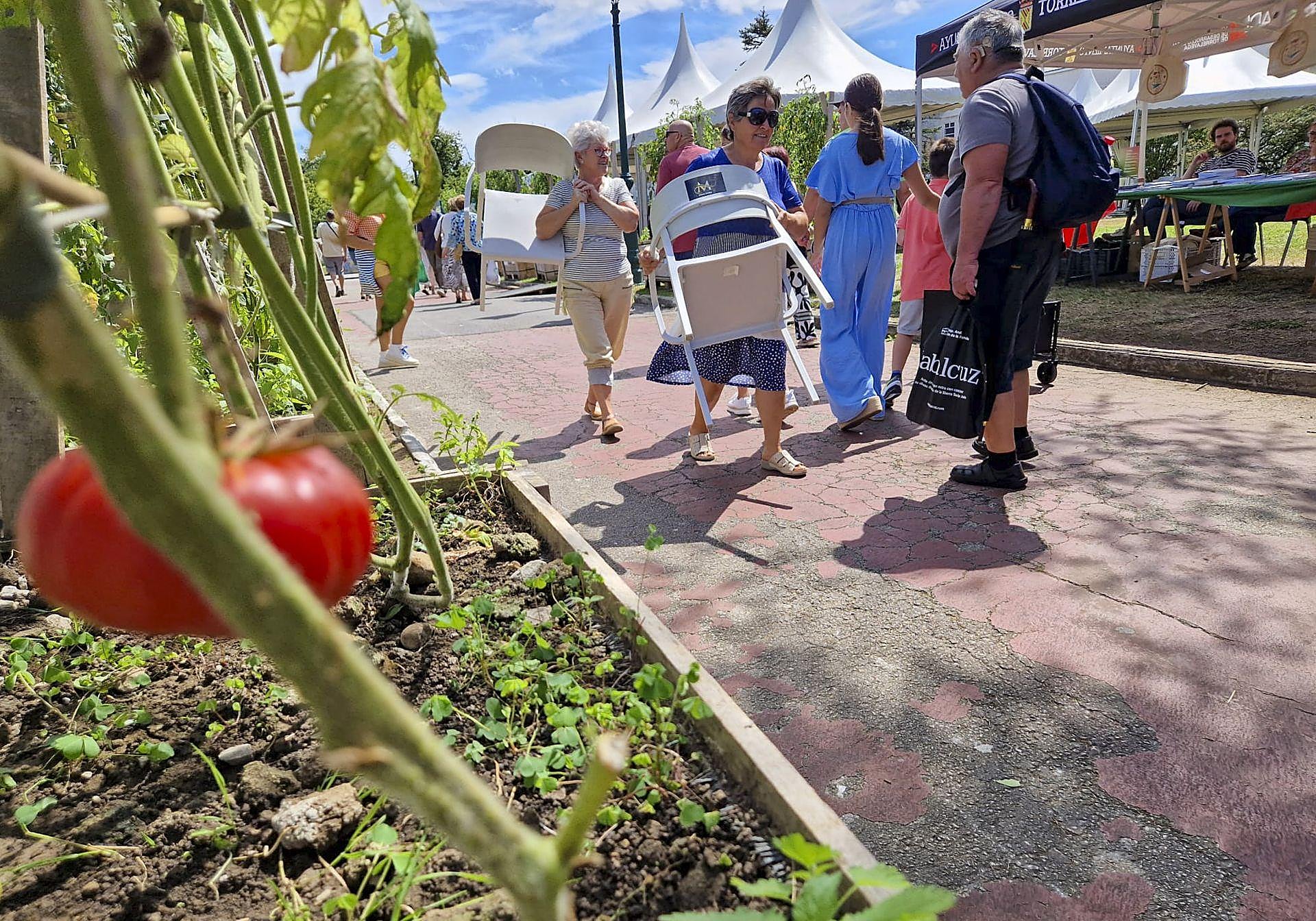 Alrededor, otros visitantes también fotografiaban tomates. Bien del frondoso pasillo cultivado por la asociación que promueve el evento, Simientes Infinitas; de los expuestos en una enorme mesa circular o de los que tenía preparados Veronique Gladstone para su experiencia sensorial. La que realizó con treinta personas sentadas en torno a una mesa, bajo una carpa que las protegió del intenso calor. Todas ellas conocieron el sabor de las variedades que ganaron en ediciones anteriores, algo «súper importante», en un festival que reivindica el fruto.