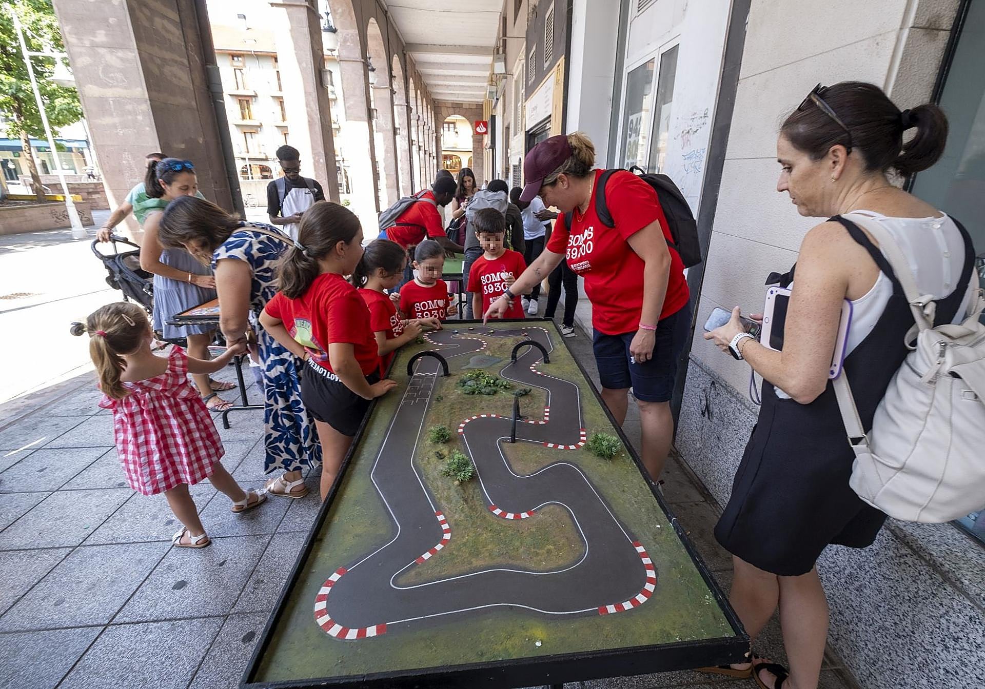 Risas de pequeños, fotos de grupo y juegos compartidos en familia marcaron la jornada de ayer en la Plaza Mayor de Torrelavega, que se llenó ... de vida con una colección de actividades pensadas, principalmente, para los niños, verdaderos protagonistas de las fiestas y esta actividad. Desde las doce del mediodía, las mesas de juego comenzaron a recibir a familias enteras, que entre la curiosidad y el entusiasmo, se acercaban a probar dos propuestas que captaron las miradas: diez mesas con circuitos para chapas de metal; y, otras diez, con pistas de 'finger skateboard'.