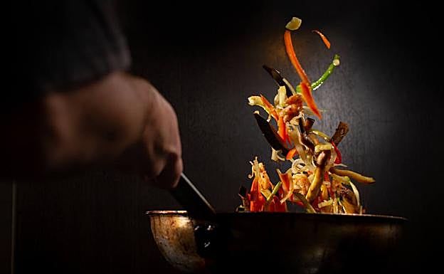 Con este modo de cocinar «con poco aceite a temperatura alta» conseguimos un resultado «crujiente y jugoso». «Es importante trocear los ingredientes al mismo tamaño y mantenerlos en constante movimiento para que se cocinen uniformemente».
