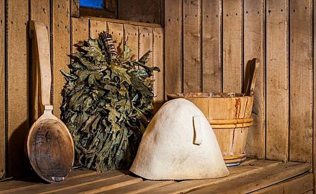 «Los finlandeses van a la sauna al menos una vez a la semana. Se vierte agua sobre piedras calientes para producir vapor y se usa a menudo un manojo de abedul para estimular la circulación».