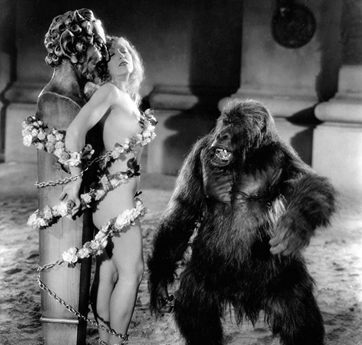 Es una secuencia de una sensualidad enfermiza y a la vez ingenua, muy en el estilo DeMille. Aunque, sin duda, el tramo más polémico de la película es el del circo romano, en donde no faltan, aparte de los consabidos combates entre gladiadores, amazonas peleando a muerte con pigmeos, más la calenturienta y peregrina ofrenda a un gorila de una doncella desnuda (y amarrada a un poste). Luego vendrá el sacrificio de los cristianos, del que DeMille nos ahorra los momentos más crudos, para no enfadar más (todavía) a las ligas de la decencia que andaban por entonces husmeando sus películas; y es que a los artistas religiosos que no se resignan a la mojigatería siempre los ha perseguido el fariseísmo oficial.