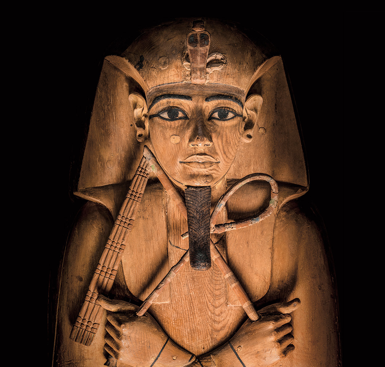 Si Ramsés II (1305-1213 a.C) fue el faraón más notable, su tumba debía ser deslumbrante. Encontrarla era el sueño de los arqueólogos. La buscaron muchos, entre ellos los legendarios Champollion y Harry Burton. Se sabía que al más grande lo habían enterrado en el Valle de los Reyes y que su cuerpo había sido escondido años después para eludir la profanación de los ladrones de tumbas. En 1881 se produjo el anhelado ¡eureka! y se encontró su ataúd. No estaba en la tumba original sino escondido en Deir el-Bahari, junto a los féretros de otros faraones. Su ataúd es de cedro del Líbano, una madera a la que se atribuía el poder mágico de transformar el cuerpo del rey en Osiris, el rey de los muertos. Llevaron sus restos a El Cairo donde analizaron y estudiaron su momia. Descubrieron que no fue un hombre bajo, de 1,70 centímetros de estatura, de nariz aguileña y que debió padecer muchos dolores en su vejez (su longevidad es sorprendente porque vivió 92 años en unos tiempos en los que la esperanza de vida apenas llegaba a los 35). Sus restos, la joya de la corona del museo de El Cairo, entraron en serio peligro debido a una invasión de hongos, así que en 1976 el faraón muerto fue llevado a París para ser tratado. Francia lo recibió con honores de jefe de Estado. Grande incluso después de muerto. En la foto, una de las piezas estrella de la exposición Ramsés y el oro de los faraones, el ataúd de Sennedjem, un artesano que trabajó en la necrópolis del Valle de los Reyes durante la Dinastía XIX, al servicio de los farones Seti I y su hijo, Ramsés II.