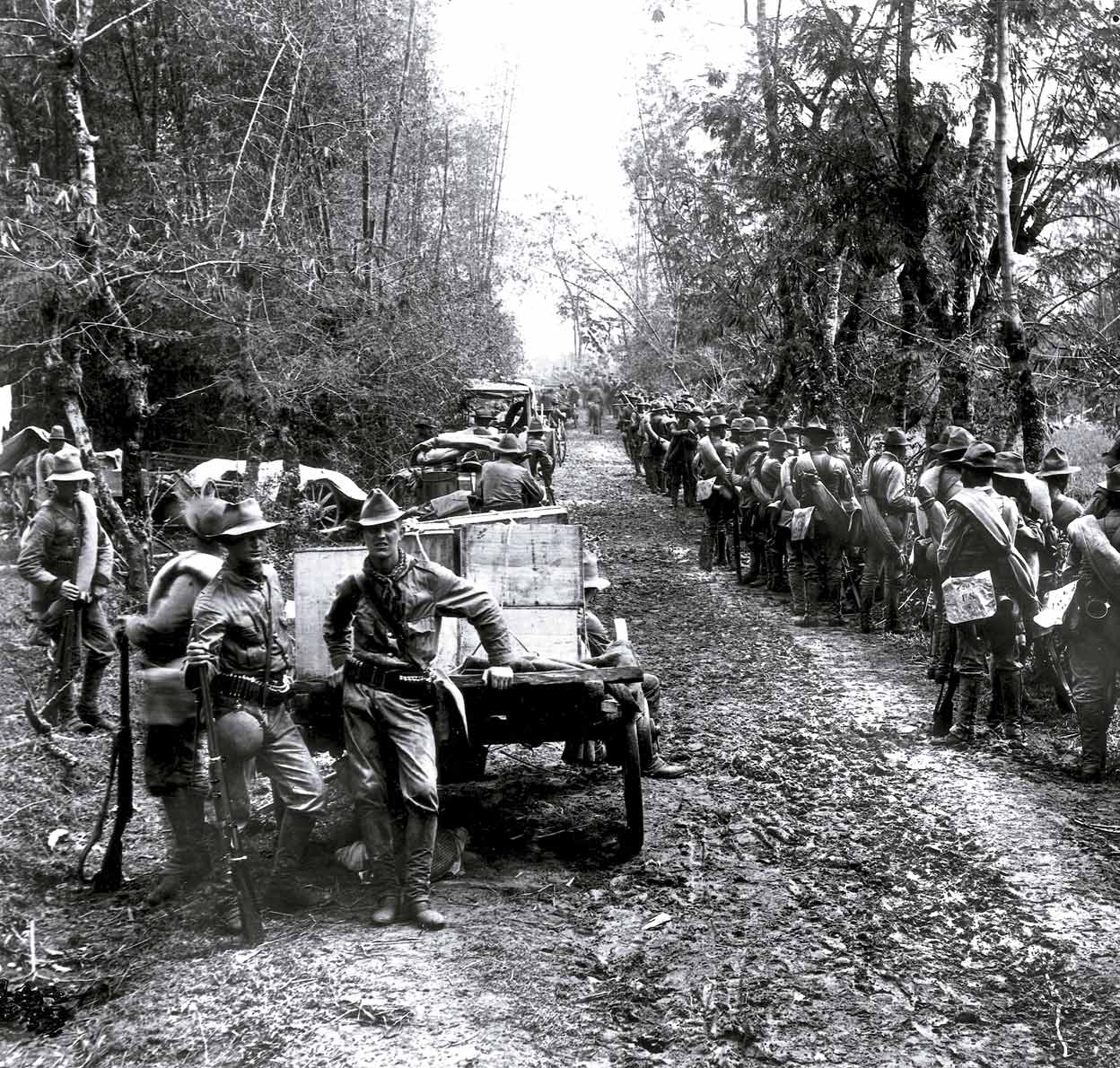 Soldados de EE.UU. descansan en algún lugar de Filipinas en el año 1900. Tras la retirada española, dos años antes –a cambio de 20 millones de dólares– los filipinos se sublevaron contra los norteamericanos, que habían prometido la independencia a las islas. Comenzaba así la era del poder colonial estadounidense.
